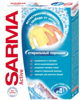 ОписаниеОбзоры Стиральный порошок Сарма разработан для стирки белого белья из хлопчатобумажных и синтетических тканей. Сосав: 5-30% фосфонаты,5-15% кислородосодер.отбеливатели,АПАВ БОЛЬШЕ 5%,пеногаситель,НПАВ,оптич отбеливатель,отдушка