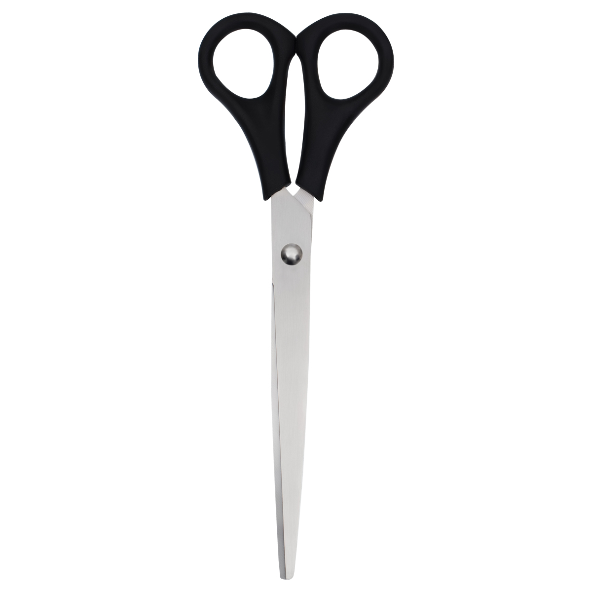 Ножницы офисные, длина 18 см, лезвия с заточкой, черные ручки, упакованы в ПВХ чехол с европодвесом