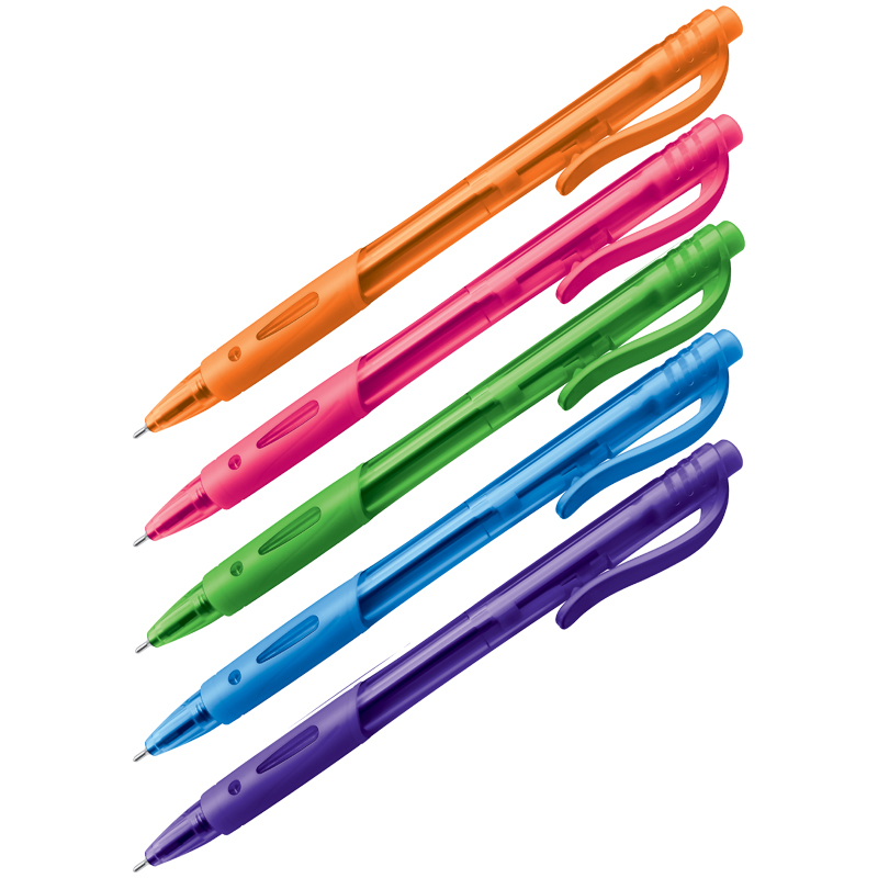 Автоматическая шариковая ручка OfficeSpace «Знак!» с кнопочным полуавтоматическим механизмом подойдет для ежедневного использования. Внутри яркого цветного пластикового корпуса – синие чернила. На ручке есть клип – можно закрепить её на одежде или тетради. Специальная резиновая накладка грип-зоны препятствует выскальзыванию ручки из пальцев. Ручка представлена в 5 цветах корпуса: синий, зелёный, оранжевый, фиолетовый, розовый. Благодаря диаметру пишущего узла 0,7 мм подходит для любого стиля письма.