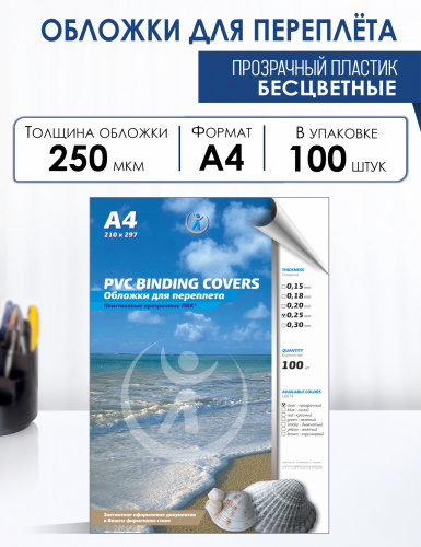 Пластиковая обложка для переплета хорошо защищает страницы от пыли и грязи, придает документу более строгий и презентабельный вид.