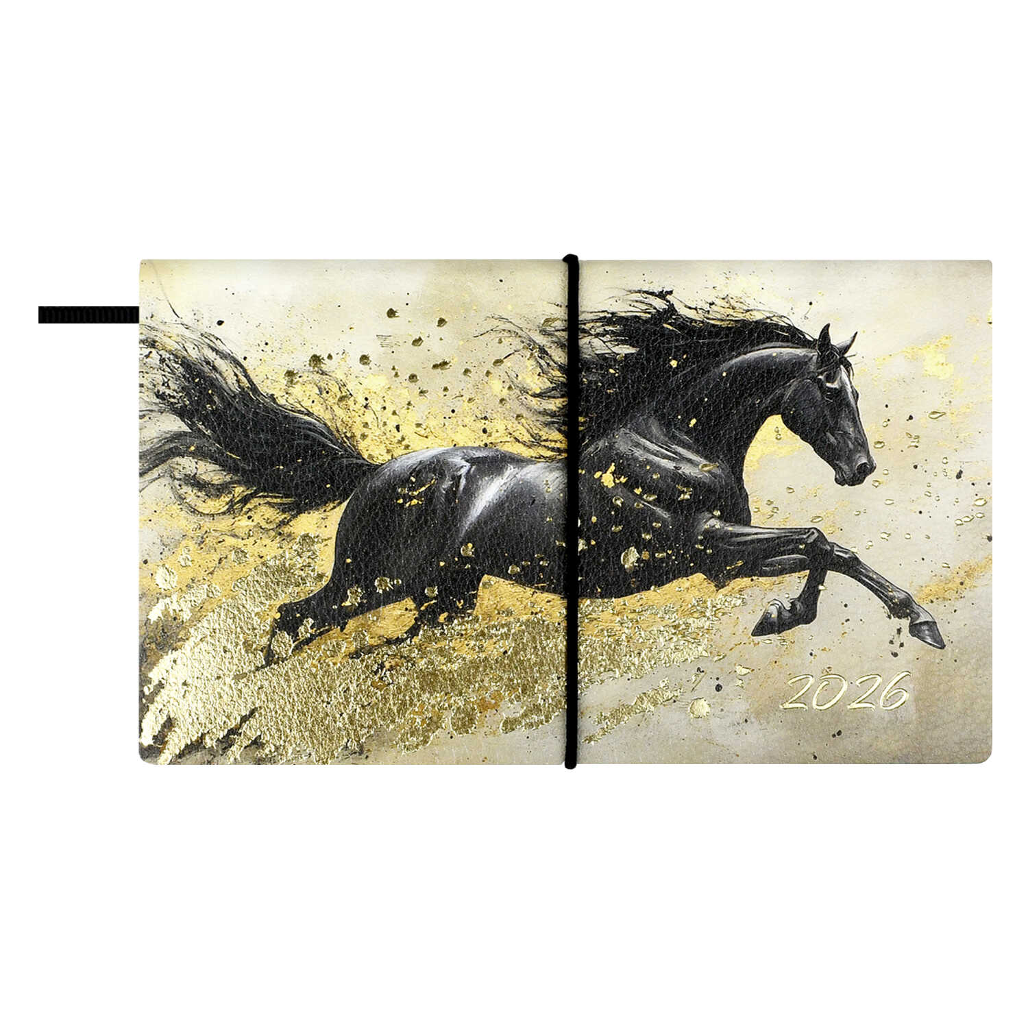 Еженедельник 2026г.,175х105мм, 64л, ВОРОНОЙ КОНЬ кожзам, белый блок, мягкий переплет, (Escalada)