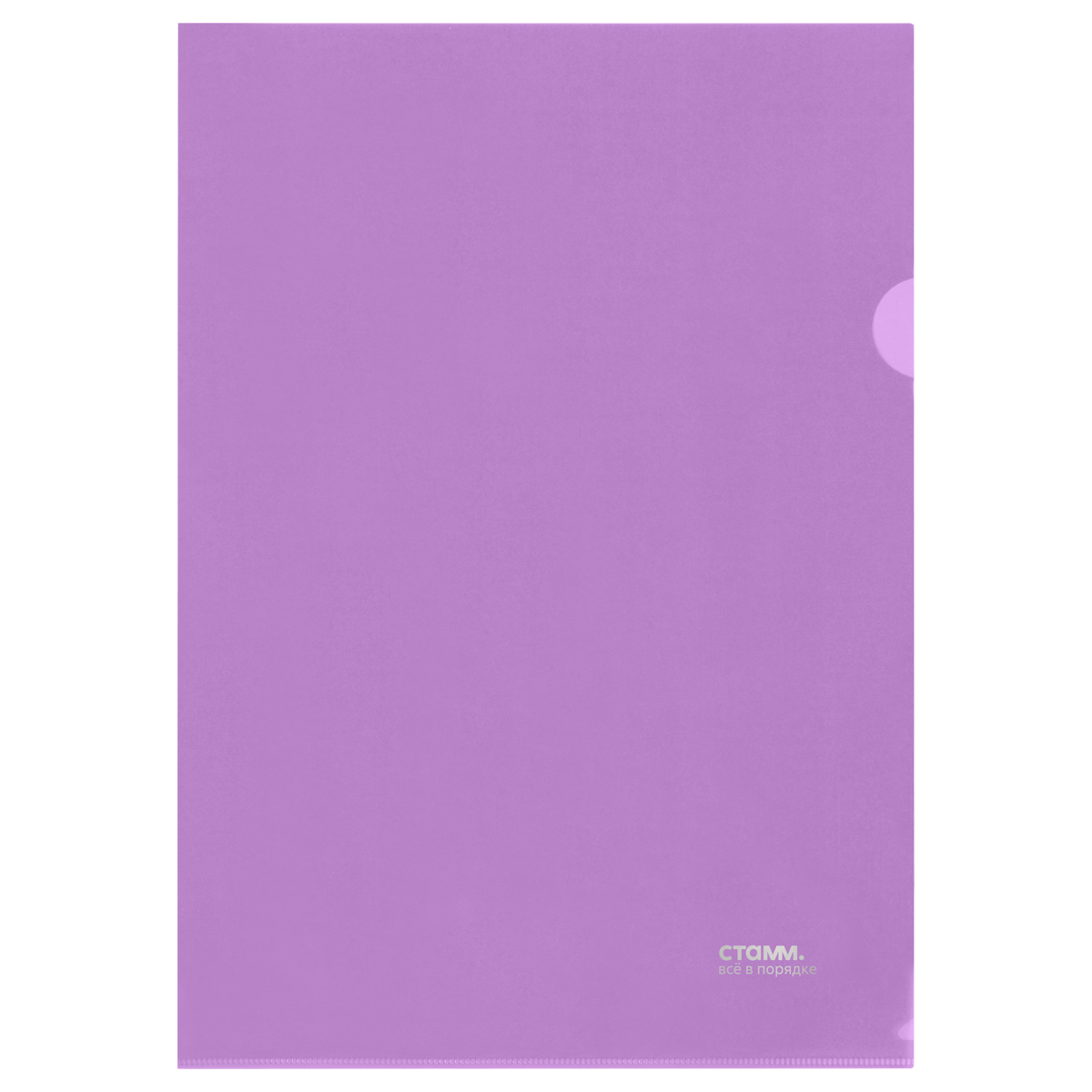 Прозрачная фиолетовая папка вмещает до 50 листов.