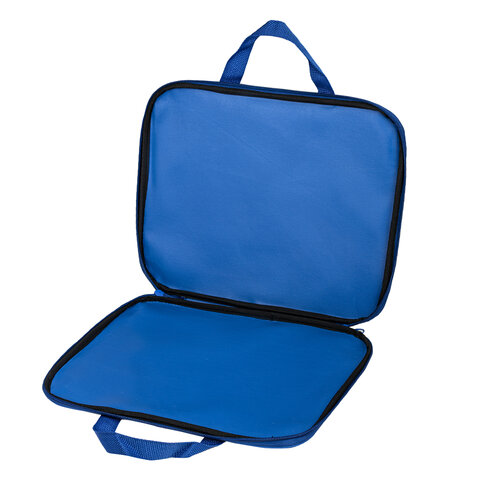 Выполнена из плотного полиэстера, что позволяет защитить документы, учебные пособия и прочие бумаги от замятий и повреждений. Ручки-тесьма. Застежка-молния по периметру папки, на молнии расположены 2 бегунка, поэтому папку можно открывать с любой стороны, а также полностью раскрыть на 180 градусов.