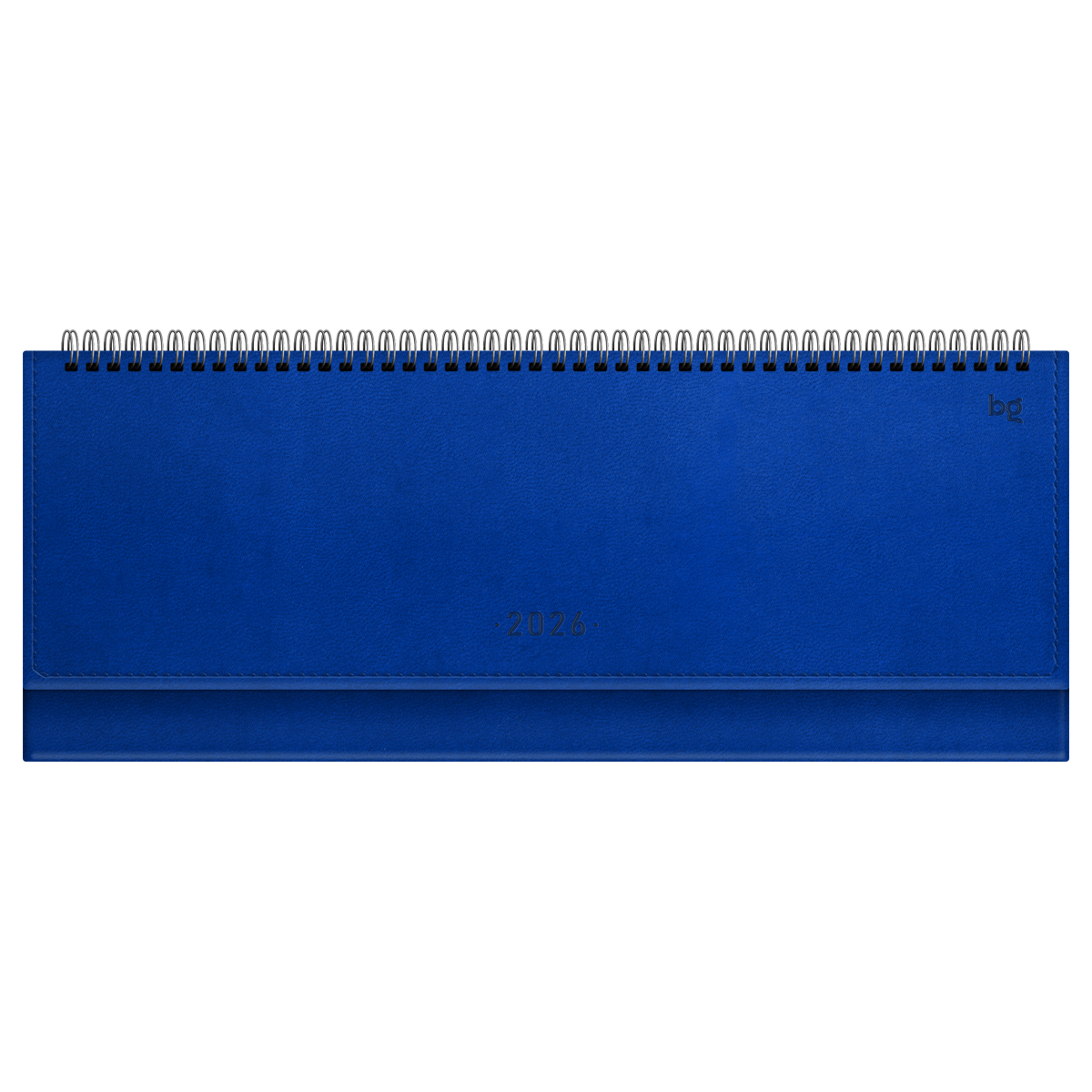 Датированный планинг на 2026 год BG серии "Winner" изготовлен из высококачественной экокожи тёмно-синего цвета с гладкой поверхностью и прострочкой по периметру.