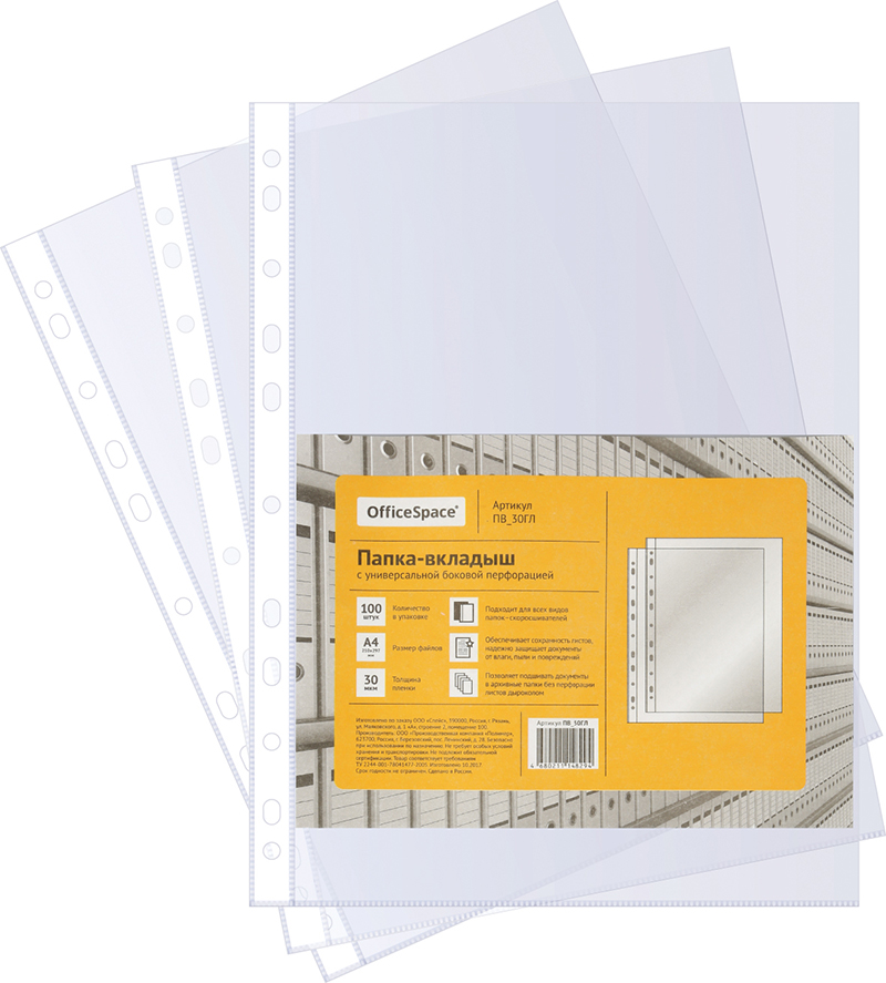 Папка-вкладыш OfficeSpace формата А4 с перфорацией предназначена для хранения бумаг, позволяет систематизировать и обеспечить сохранность документов. Папка размером 305*235 мм изготовлена из полипропилена толщиной 30 мм с глянцевой текстурой.